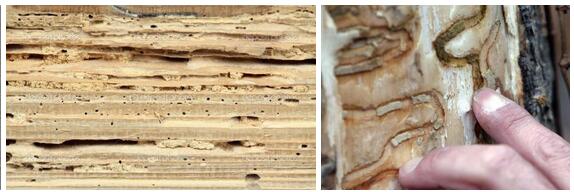 蠹蟲的危害性及破壞性雖不及白蟻,但它照樣能蛀穿堅(jiān)硬的硬木地板和家俱、護(hù)墻板的外表,形成一個(gè)個(gè)空洞,排出大量的粉末。而在現(xiàn)代家居中,住戶往往是投入幾萬甚至幾十萬元進(jìn)行裝修,一旦遭受蠹蟲危害,且得不到及時(shí)治理,蔓延的勢(shì)頭很難得到遏制,極大地影響住宅的觀賞性和使用性。嚴(yán)重時(shí)會(huì)把家居裝修蛀食得千瘡百孔。
